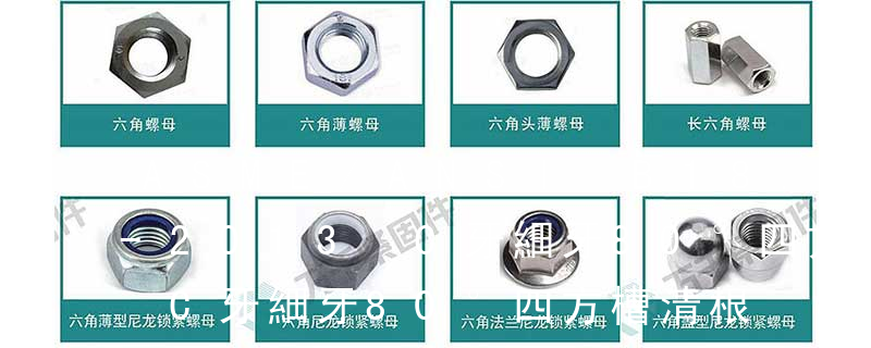 1、Flat:平頭 (鎖入后,頂部與工作件齊平)2、Oval:色拉頭、O頭、半沉頭 3、Round:圓頭 4、Pan:圓扁頭 5、Truss:大圓扁頭 6、Hex:六角頭 A-5:Finish Code/外觀處理。公制自攻螺絲 :于品名后方直接標示 Tapp 主要分類包括普通螺絲、機螺絲、自攻螺絲和膨脹螺絲三種。 有頭螺釘Cap screw 過去限于全牙的扣件。 六角頭螺釘Hex cap screw與大六角螺栓Hex bolt 顧名思義為頭部為六角型的外螺紋扣件,設計為使用扳手轉動。依照ASME B18.2.1標準,六