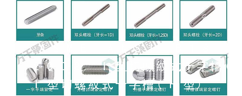 1)開槽普通螺釘多用于較小零件的連接。它有盤頭螺釘、圓柱頭螺釘、半沉頭螺釘和沉頭螺釘。盤頭螺釘和圓柱頭螺釘的釘頭強度較高,瑁在普通的部件連接上;半沉頭螺釘的頭部呈弧形,安裝后它的頂端略外露,且美觀光滑,一般用 Pozi 米制槽 Phill 十字槽 Serra-tion 墊下帶花 Flower Head 開花頭 6-bobes recess 內梅花 Piston bolt 活塞螺釘 Winding bolt 線圈螺釘 Hexagon head bolts-full thread 六角頭螺栓 全螺紋 Carriage bolt 馬車螺栓 Square head bolt