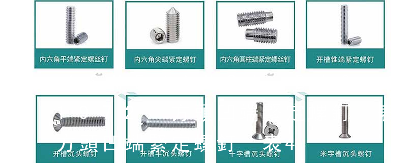 緊定螺釘通常由鋼或不銹鋼材料制造,它的端頭形狀有錐形、凹形、平頭形、圓柱形和階梯形等。錐端或凹端緊定螺釘的端頭直接頂緊零件,一般用于安裝后不常拆卸處;平端緊定螺釘的端頭平滑,頂緊后不損傷零件表面,用于需經 緊定螺釘主要用于固定兩個零件之間的相對位置。特殊用途螺釘例如有吊環螺釘等供吊裝零件用。4. 螺母:帶有內螺紋孔,形狀一般呈顯為扁六角柱形,也有呈扁方柱形或扁圓柱形,配合螺栓、螺柱或機器螺釘,用于緊固連接兩個零件,使之成為一件整體